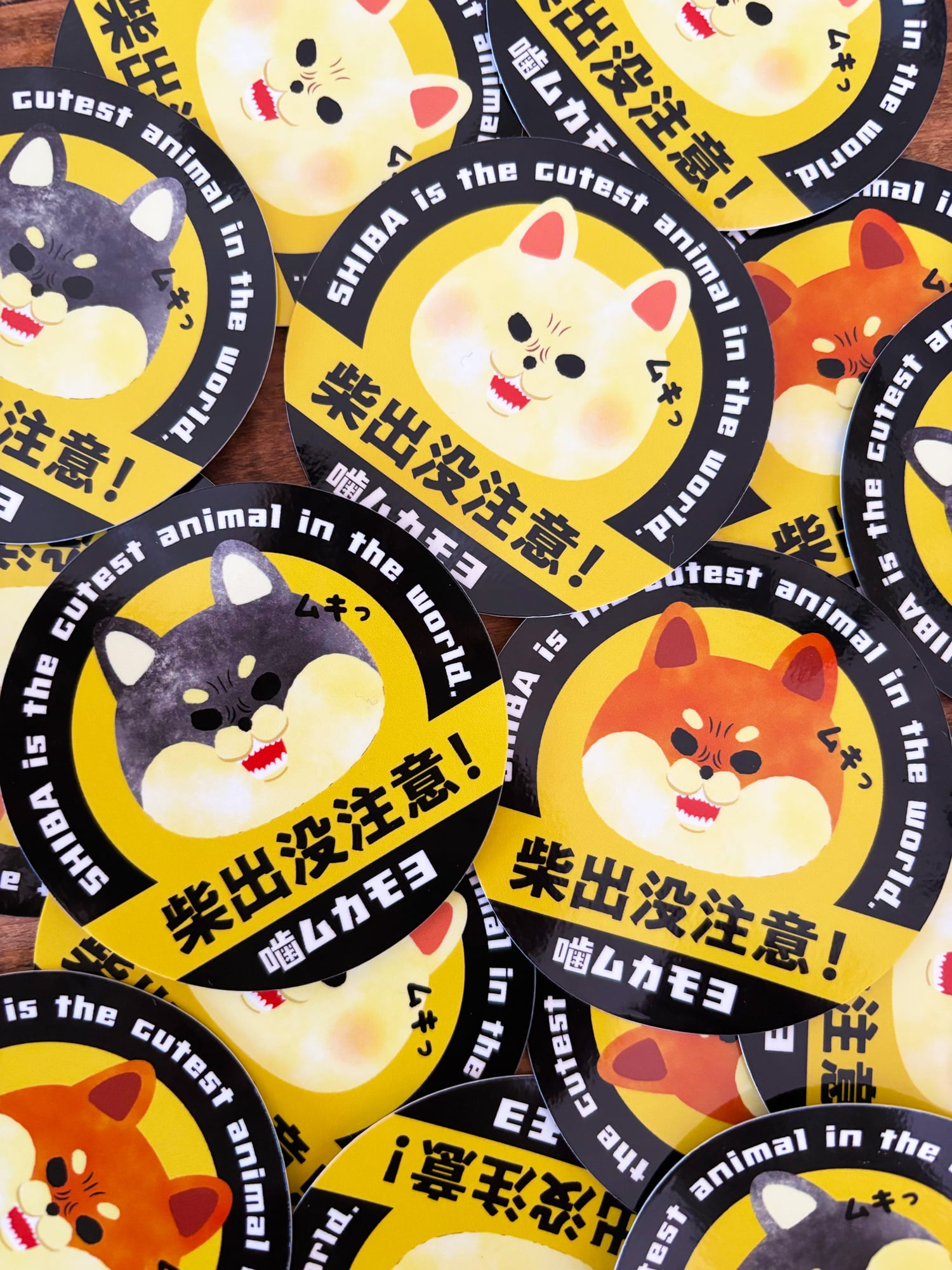 人気のイラスト「柴出没注意!」が防水ステッカーとなって登場です!可愛いムキ顔の柴犬たちが、あなたのお家やお車をユーモラスに彩ります。柴犬ファンにはたまらないアイテムですので、ぜひご活用ください!