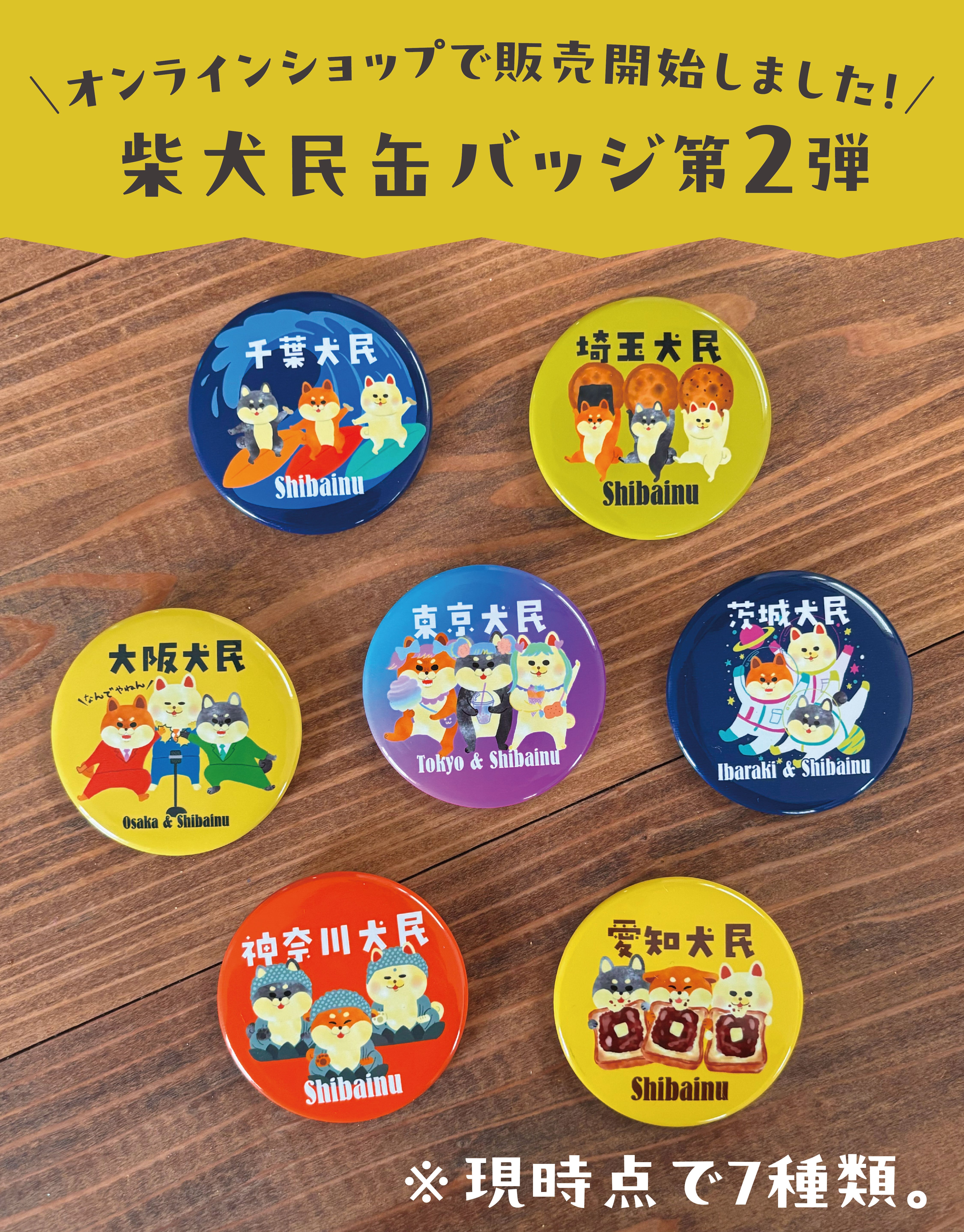 柴犬民缶バッジ_第2弾(現時点で7種類)